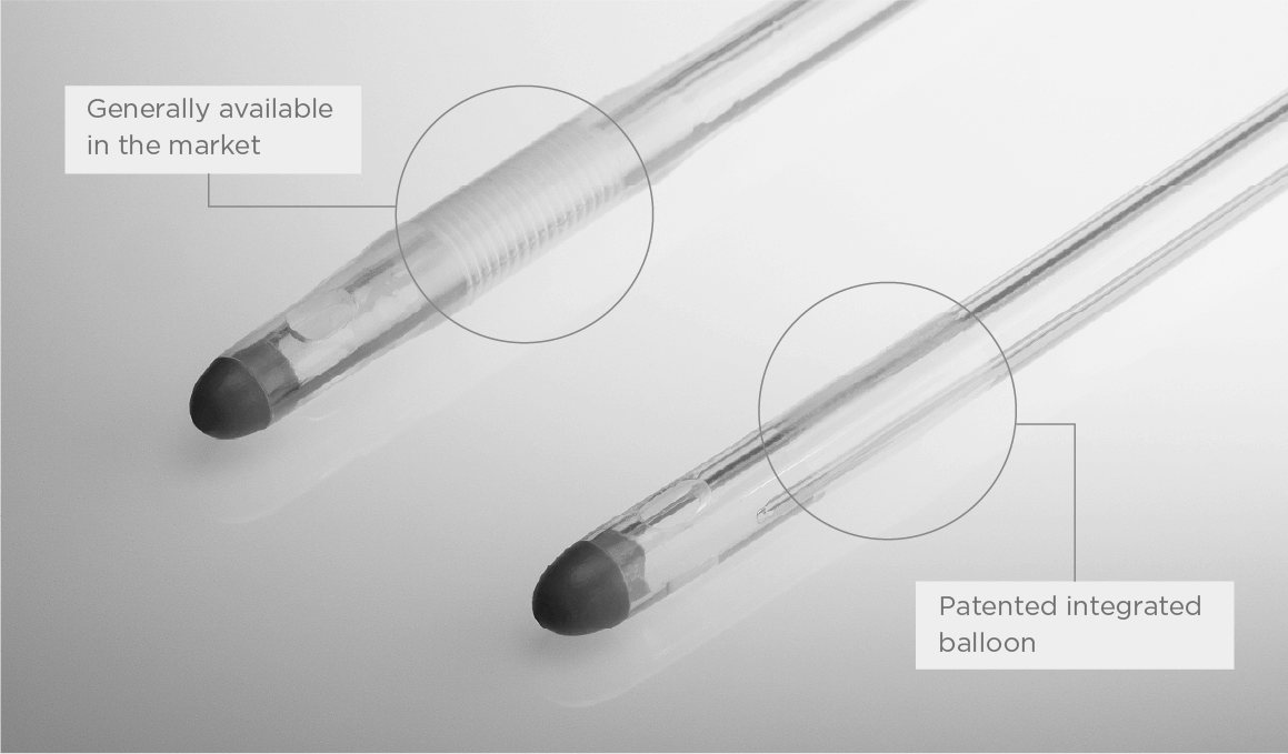 Note 1: Integrated balloon with a smooth surface to effectively reduce discomfort during insertion and withdraw.