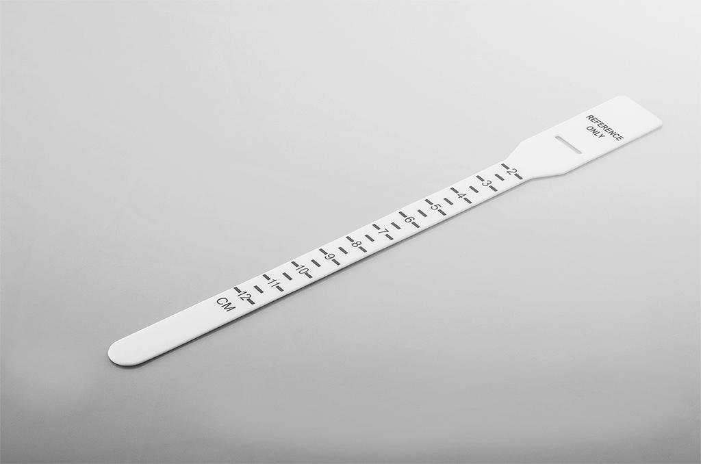 Solid silicone strap with markers from 2 cm to 12 cm in 0.5 cm increments.